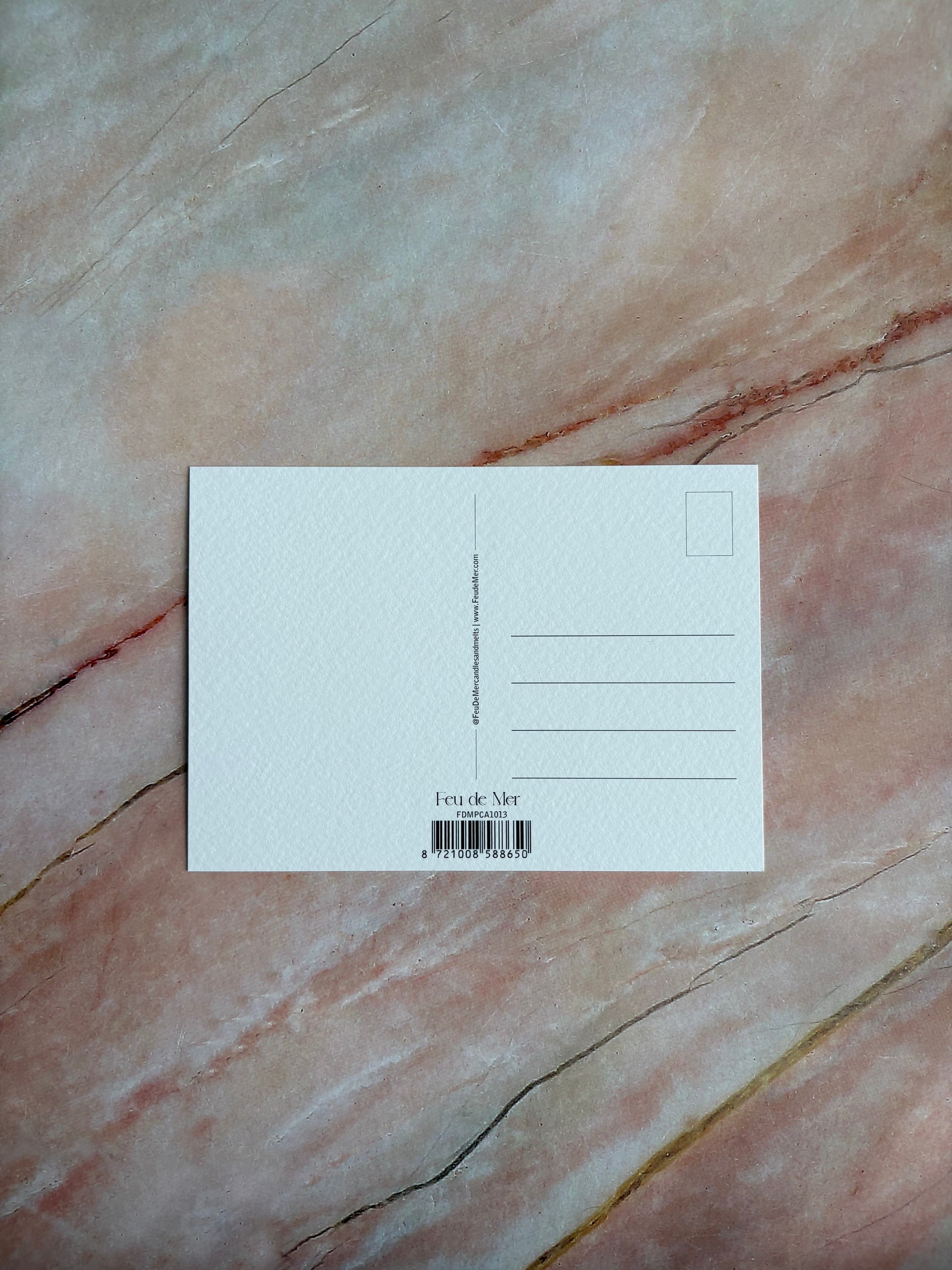 Elke kaart is met zorg ontworpen in onze eigen studio, Studio Feu de Mer. De illustratie weerspiegelt niet alleen de schoonheid van de zee, maar ook de vreugde van liefde en samenzijn.