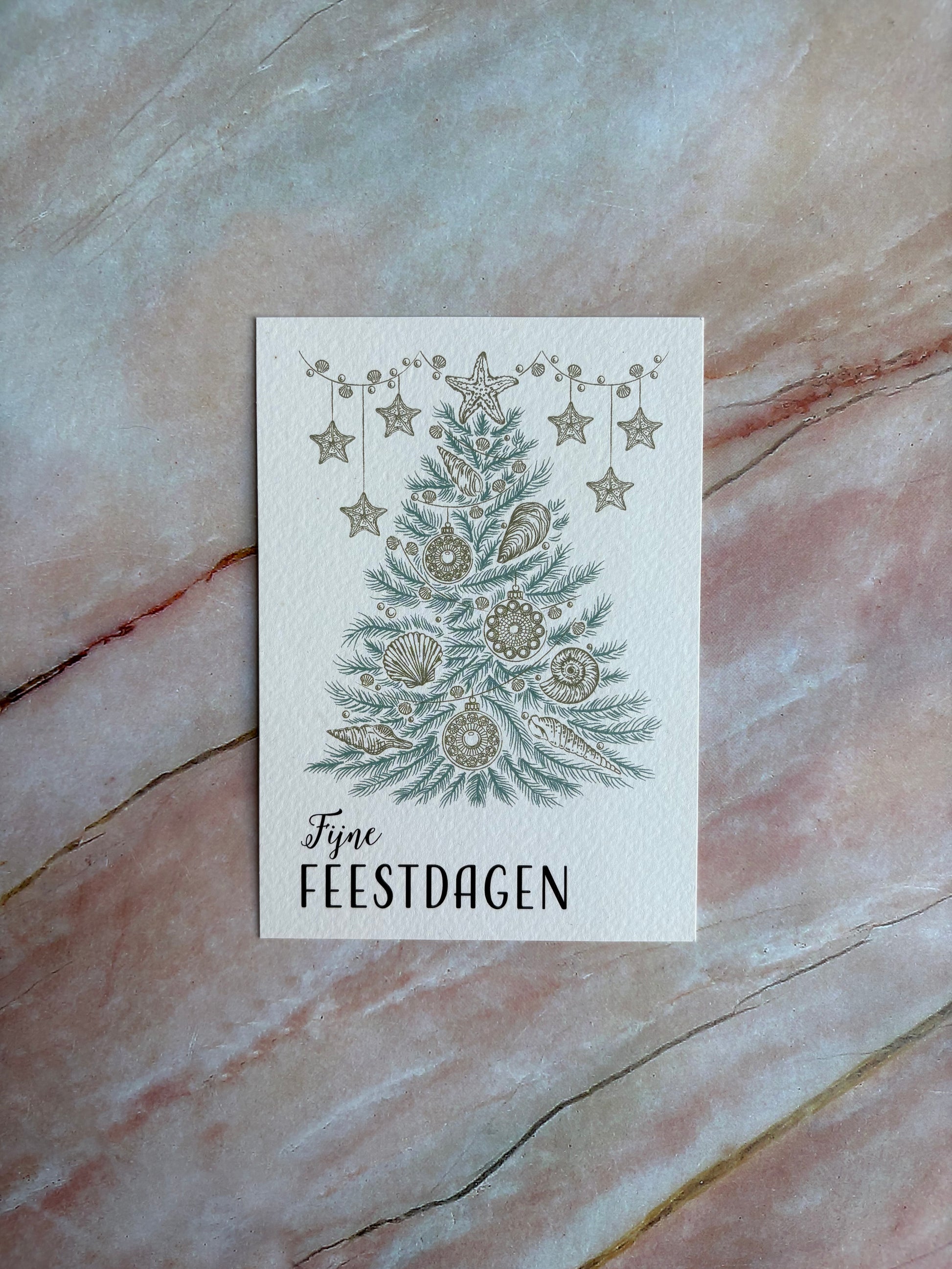 Breng een stukje Zeeuwse kust naar de feestdagen met onze prachtige ansichtkaart "Fijne Feestdagen", ontworpen door Studio Feu de Mer. Deze unieke kaart is geïnspireerd op de rust en schoonheid van de Zeeuwse kust en voegt een persoonlijke touch toe aan jouw kerstgroeten.