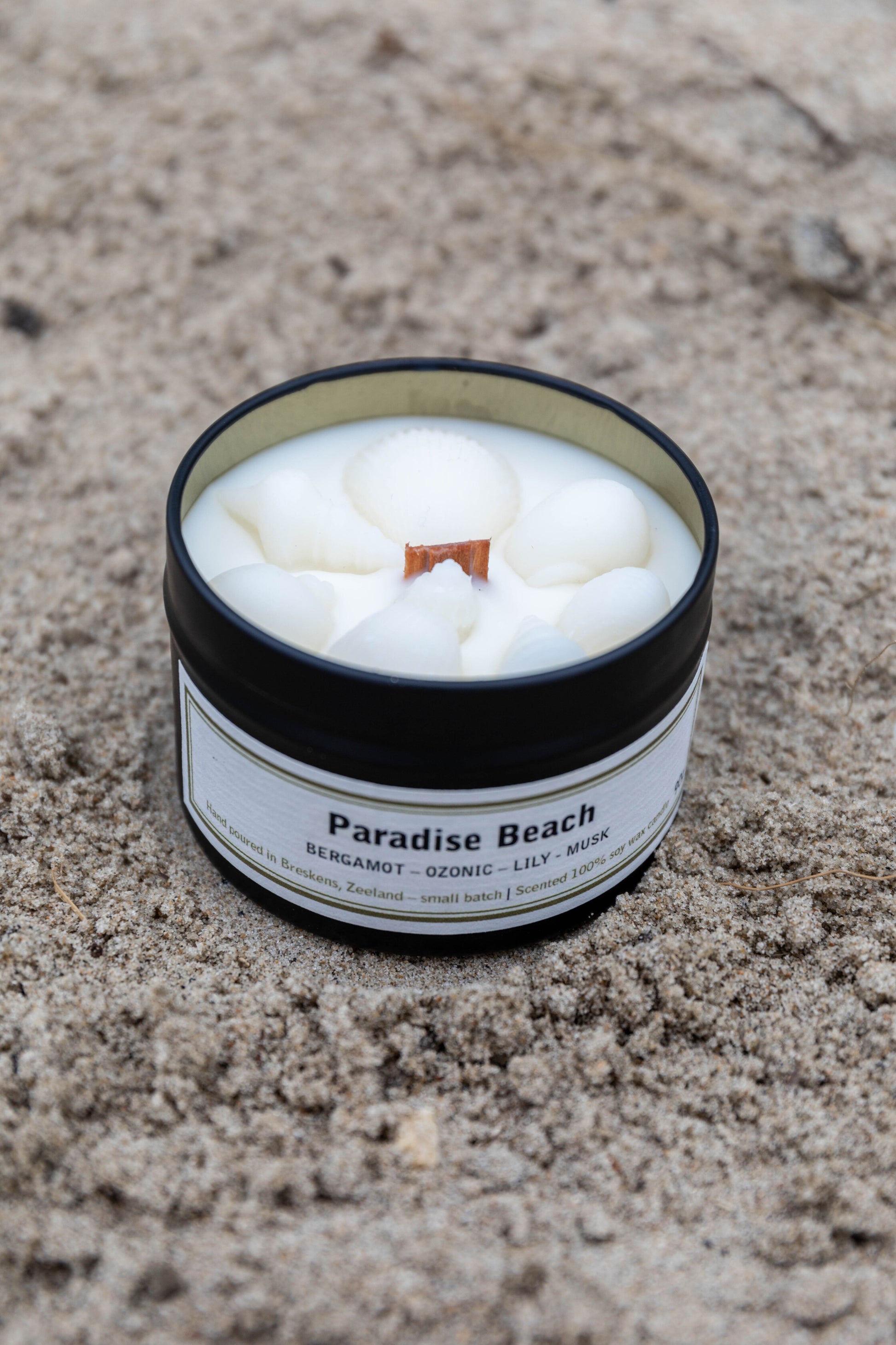 De geurkaars ‘Paradise Beach’ van 90 gram behoort tot de Signature collectie, geïnspireerd op de Zeeuwse kust. De geur van deze natuurlijke kaars verspreidt een heerlijk warme, toch frisse aroma, waardoor je je bijna in een hotel aan zee waant. Het vangt op een prachtige manier de essentie van een betoverend strand door subtiele bloemige tonen van lelie, verfrissende ozonische noten van bergamot en een vleugje muskus.