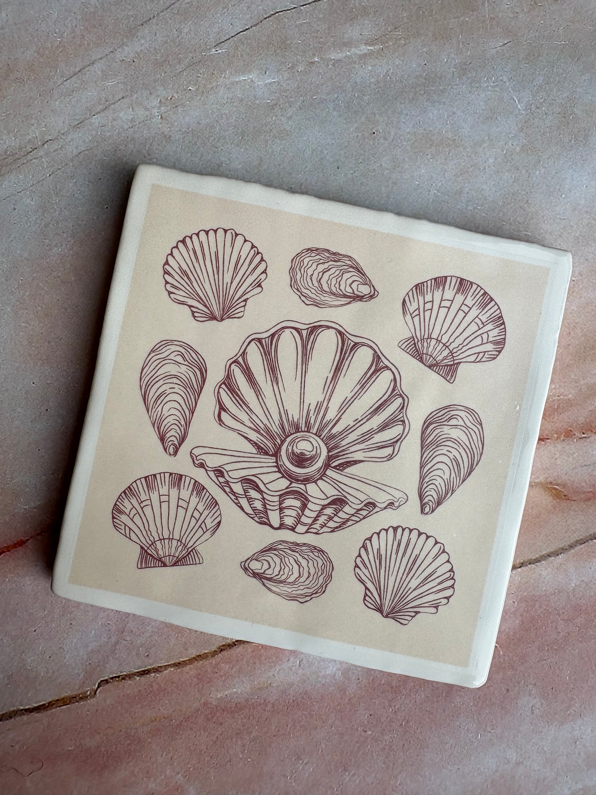 Breng de schoonheid van de kust naar je woonkamer met ons prachtige tegeltje met schelpenontwerp. Dit charmante stukje decoratie vangt de essentie van een zomerse strandwandeling met zijn gedetailleerde illustraties van diverse schelpen, zoals: mossels, Sint Jakobsschelpen en oesters. Perfect voor liefhebbers van de zee, het strand of voor wie gewoon een vleugje maritieme rust in huis wil brengen.