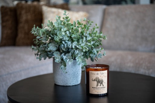 verpakking: iedere kaars komt verpakt in een mooi kraft doosje in de stijl van de Feu de Mer x Ferdy Remijn collectie